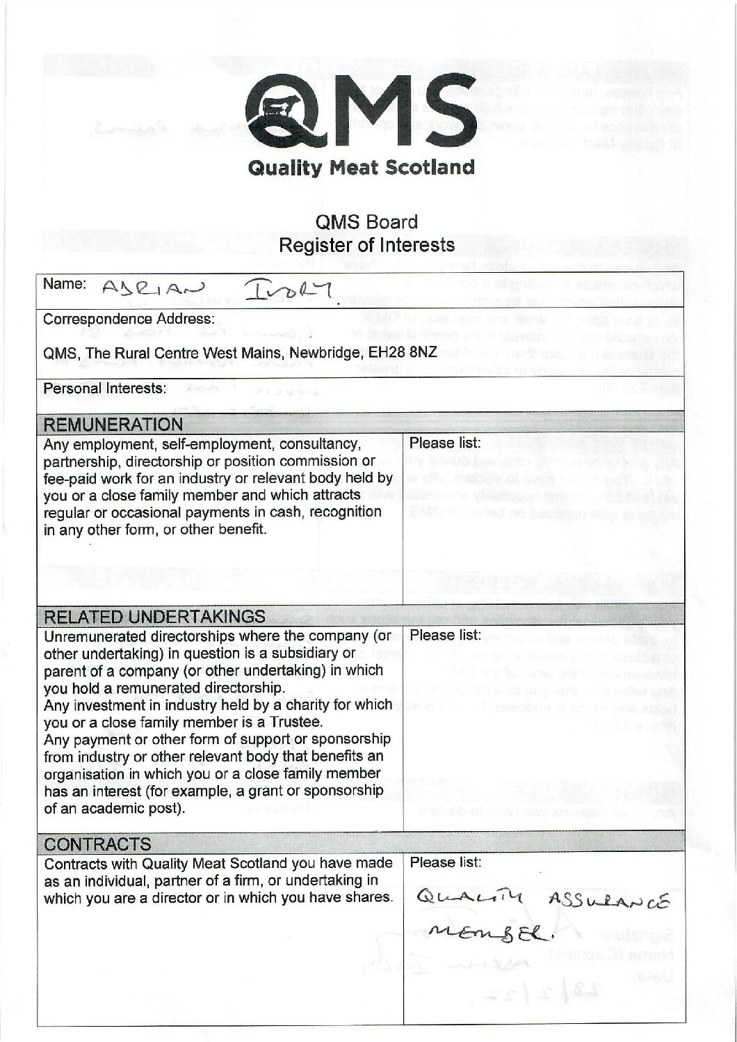 About QMS Board Documents QMS Board Board Documents Search Looking Glass Document Type All Document Types Board Minutes & Papers Briefing Fact Sheets Market Updates Publications Standards Template Tenders Toolkits Category All Categories Annual Review Business Plan Consumer Insights Report Exports Industry Livestock + Market Report Market Update The Cut – Magazine View Save PDF scottish red meat resilience group position paper published View Save PDF Register of Interests 22 23 Board Members View Save PDF QMS Strategic Management Team – Register of Interests 2023 2024 View Save PDF QMS Corporate Business Plan 2024 2025 View Save PDF QMS Board Register of Interests Form 2024 2025 View Save PDF QMS Board Register of Interests 2025 2026 View Save PDF QMS Board Meeting 28th April 2022 Minutes View Save PDF QMS Board Meeting 27th November 2025 Minutes for website View Save PDF QMS Board Meeting 26th June 2025 Minutes for website View Save PDF bQMS Board Meeting 24th April 2025 Minutes for Website View Save PDF QMS Board Meeting 22nd September 2022 Minutes View Save PDF QMS Board Meeting 1st July 2022 Minutes 1 of 9 1 2 … 9 Next